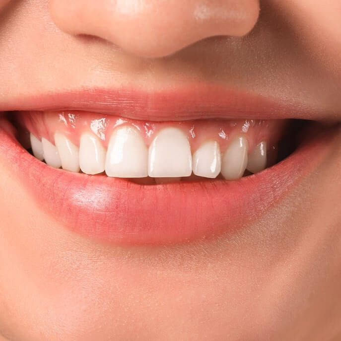 2/Niewłaściwy rozwój zębów lub ich niewystarczające wydłużenie mogą sprawiać, że dziąsła wydają się bardziej widoczne. Tutaj ryzyko chorób dziąseł i próchnicy wzrasta.
