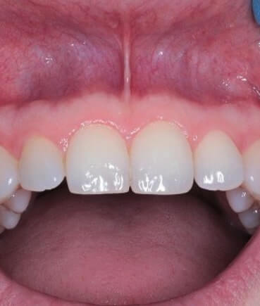 7/krótkie wędzidełko wargi górnej może ograniczać ruchomość wargi, co również przyczynia się do odsłonięcia większej powierzchni dziąseł.