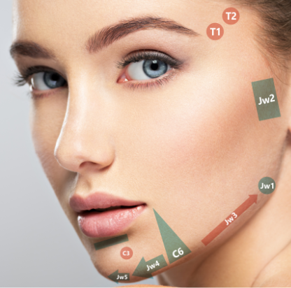 Technikę tę nazywamy DynaCODES, a proces, który zachodzi – miomudulacją. 7- point lift (lub 9-point lift u mężczyzn) jest metodą odmładzania wizualnego twarzy za pomocą kwasu hialuronowego. Z wiekiem skóra wiotczeje, tkanka podskórna oraz poduszki tłuszczowe ulegają zanikowi, kość ulega resorpcji. Te procesy prowadzą do obwisania skóry twarzy, pogarsza się nasz owal, pojawiają się nielubiane „chomiki” i linie marionetki. Niektórzy zauważają drugi podbródek, dolinę łez, a także pogłębiające się bruzdy nosowo-wargowe. Można w pewnym stopniu odwrócić ten proces podając w miejsca ubytków tkankowych kwas hialuronowy. Kluczowa jest prawidłowa identyfikacja potrzeb danego Pacjenta. Zaczynamy od indywidualnej oceny twarzy w oparciu o jej anatomię, a także o uniwersalne MD Codes. Określam te punkty, których wypełnienie będzie u danego pacjenta najbardziej efektywne, biorąc pod uwagę też wpływ na struktury sąsiednie (np.: wypełnienie okolicy skroni unosi brew, optycznie otwiera oko, natomiast podanie preparatu na wyniosłość policzka spłyca bruzdy – nosowo wargowe